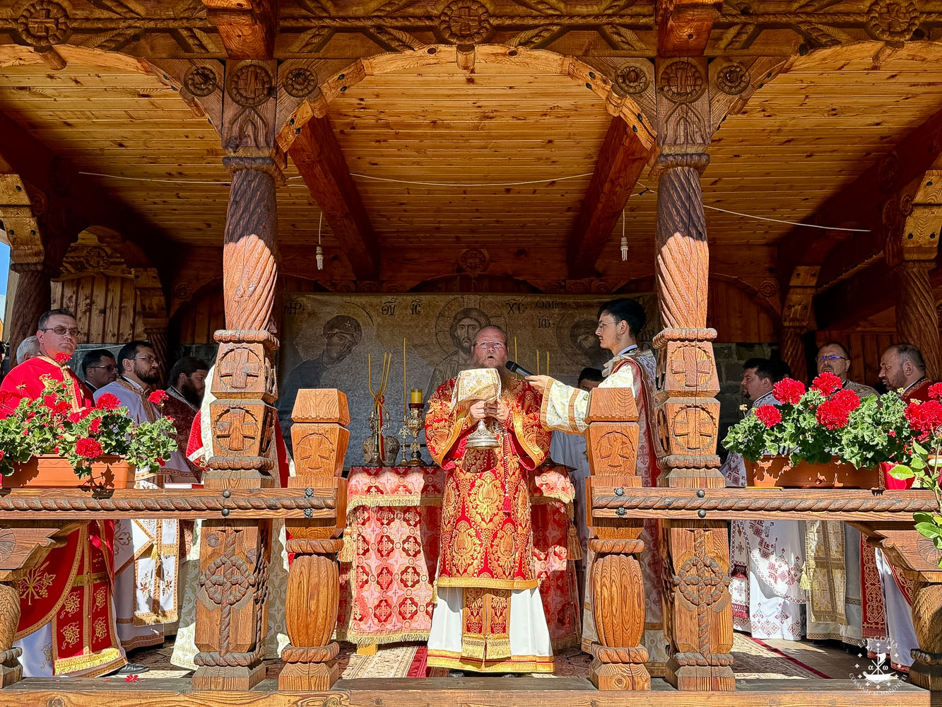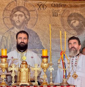 Sfânta Liturghie a fost săvârșită de un sobor de ierarhi, preoți și diaconi, fiind prezenți Preasfințitul Părinte Andrei, Episcopul Covasnei și Harghitei, Preasfințitul Părinte Nestor, Episcopul Devei și Hunedoarei, și Preasfințitul Părinte Gherontie Hunedoreanul, Arhiereu Vicar al Episcopiei Devei și Hunedoarei.