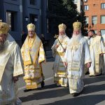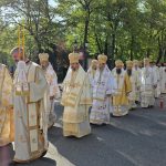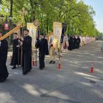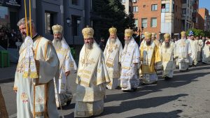 După Sfânta Liturghie soborul slujitor a pornit în procesiune cu icoana Sfântului Mare Mucenic Gheorghe de la Catedrala Episcopală la Centrul Eparhial.