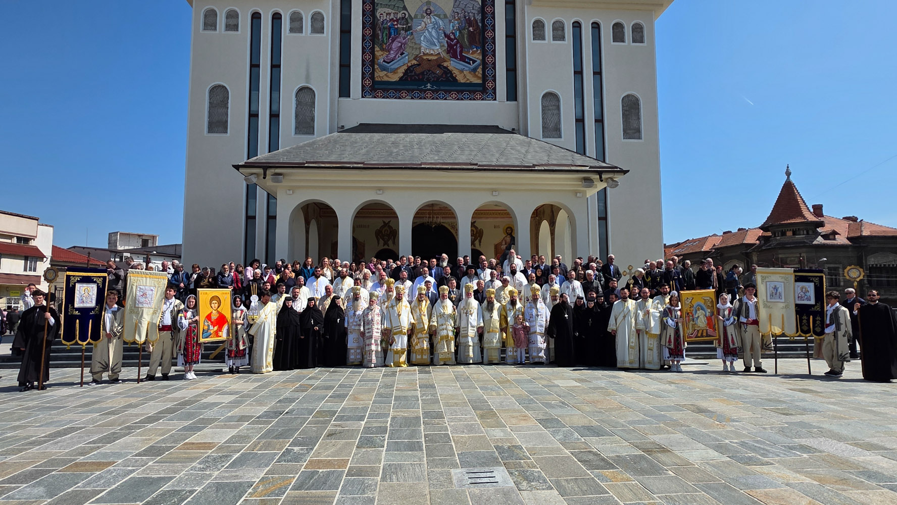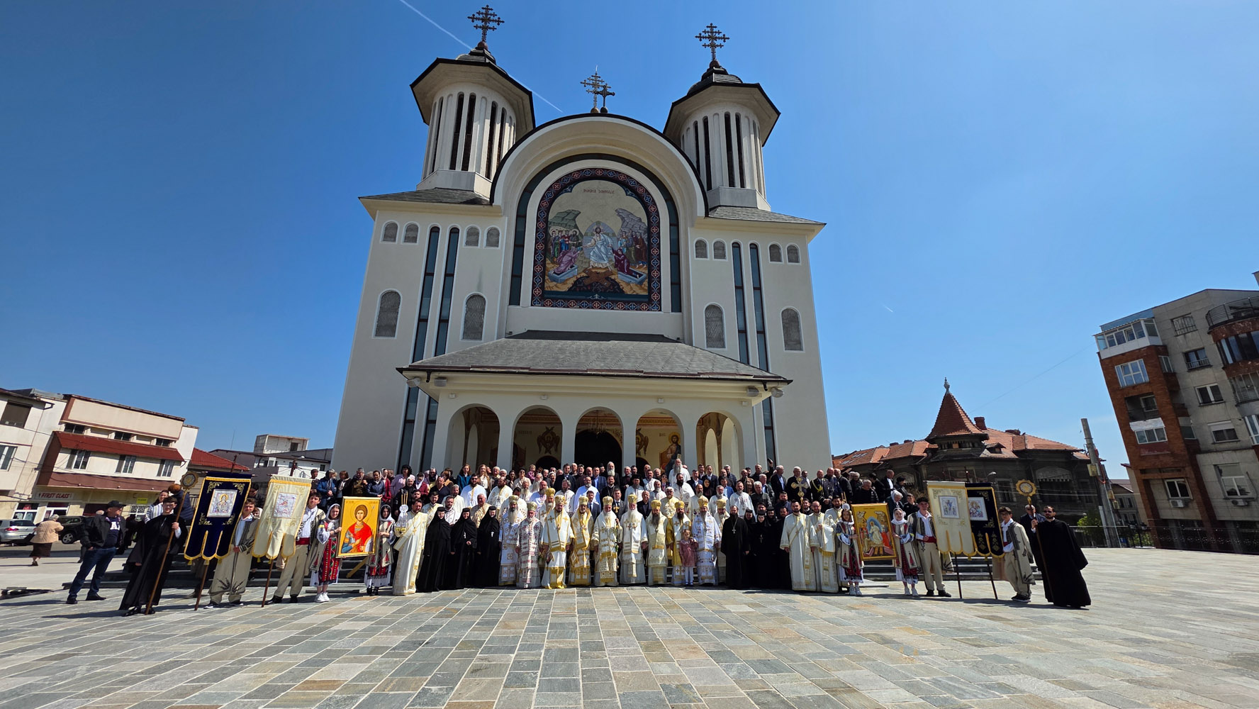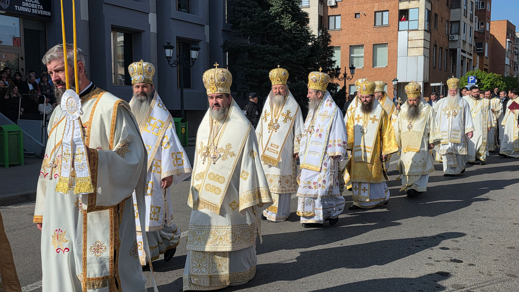 Programul zilei de joi, 16 aprilie, a început la Centrul Eparhial, prin primirea și înveșmântarea ierarhilor, urmată de procesiunea solemnă cu icoana Sfântului Mare Mucenic Gheorghe, purtată cu evlavie către Catedrala Episcopală. Momentul a fost trăit cu emoție de credincioși, într-o comuniune care a unit pașii și sufletele tuturor.