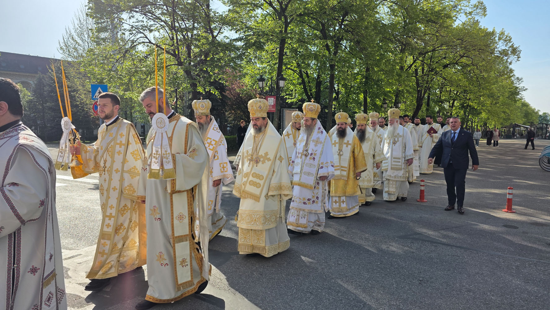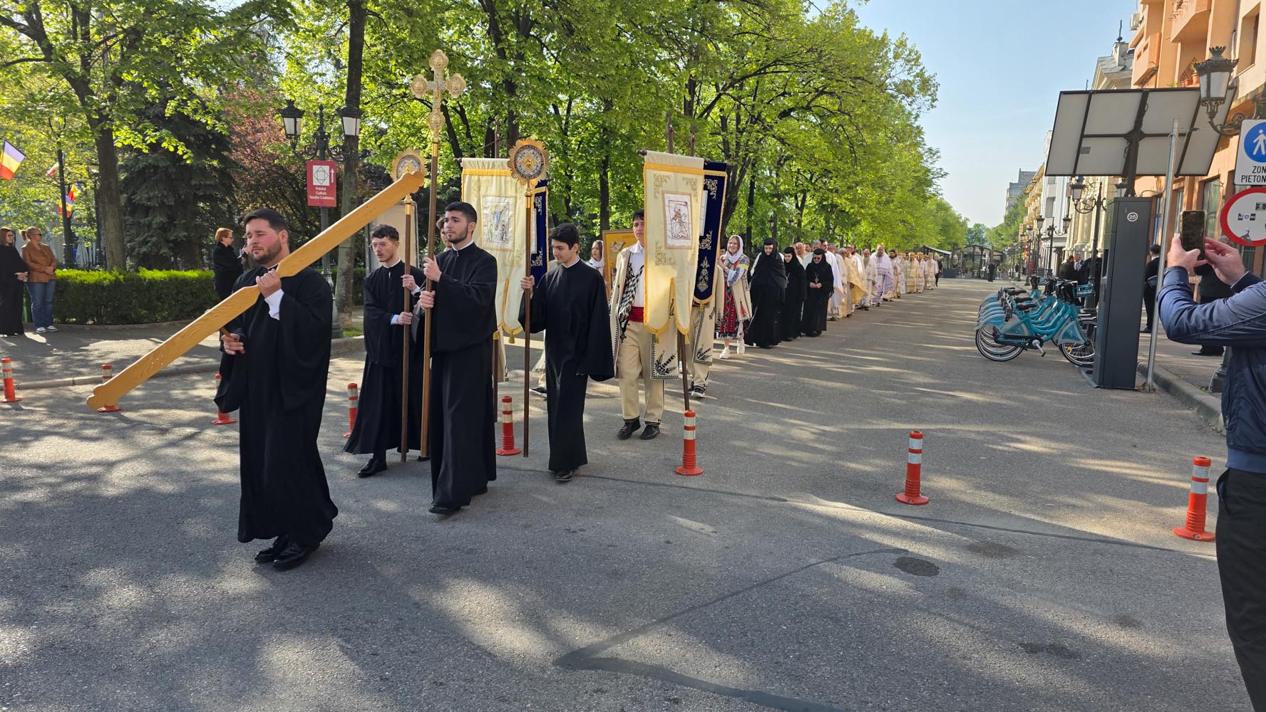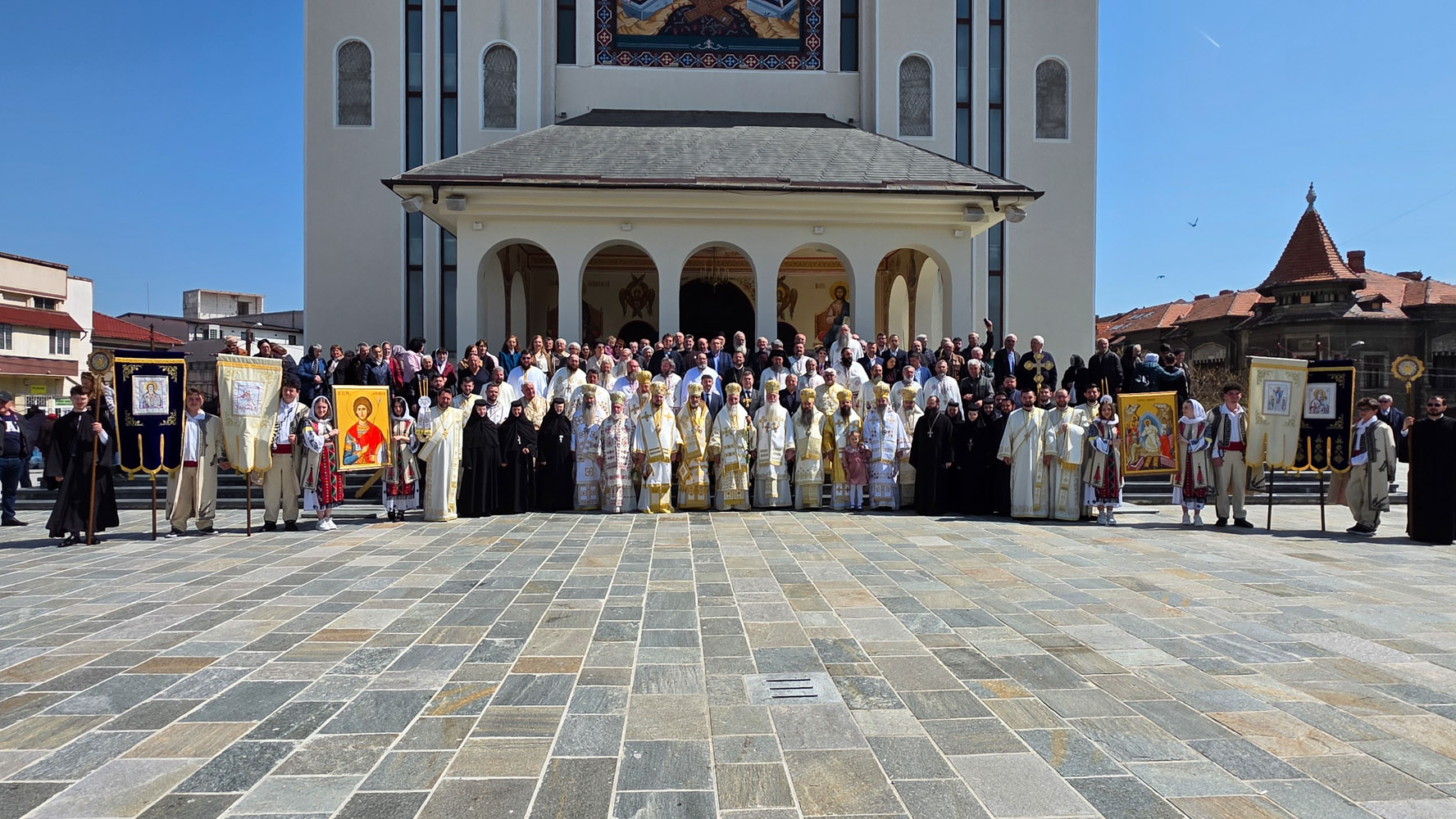 Programul zilei de joi, 16 aprilie, a început la Centrul Eparhial, prin primirea și înveșmântarea ierarhilor, urmată de procesiunea solemnă cu icoana Sfântului Mare Mucenic Gheorghe, purtată cu evlavie către Catedrala Episcopală. Momentul a fost trăit cu emoție de credincioși, într-o comuniune care a unit pașii și sufletele tuturor.