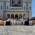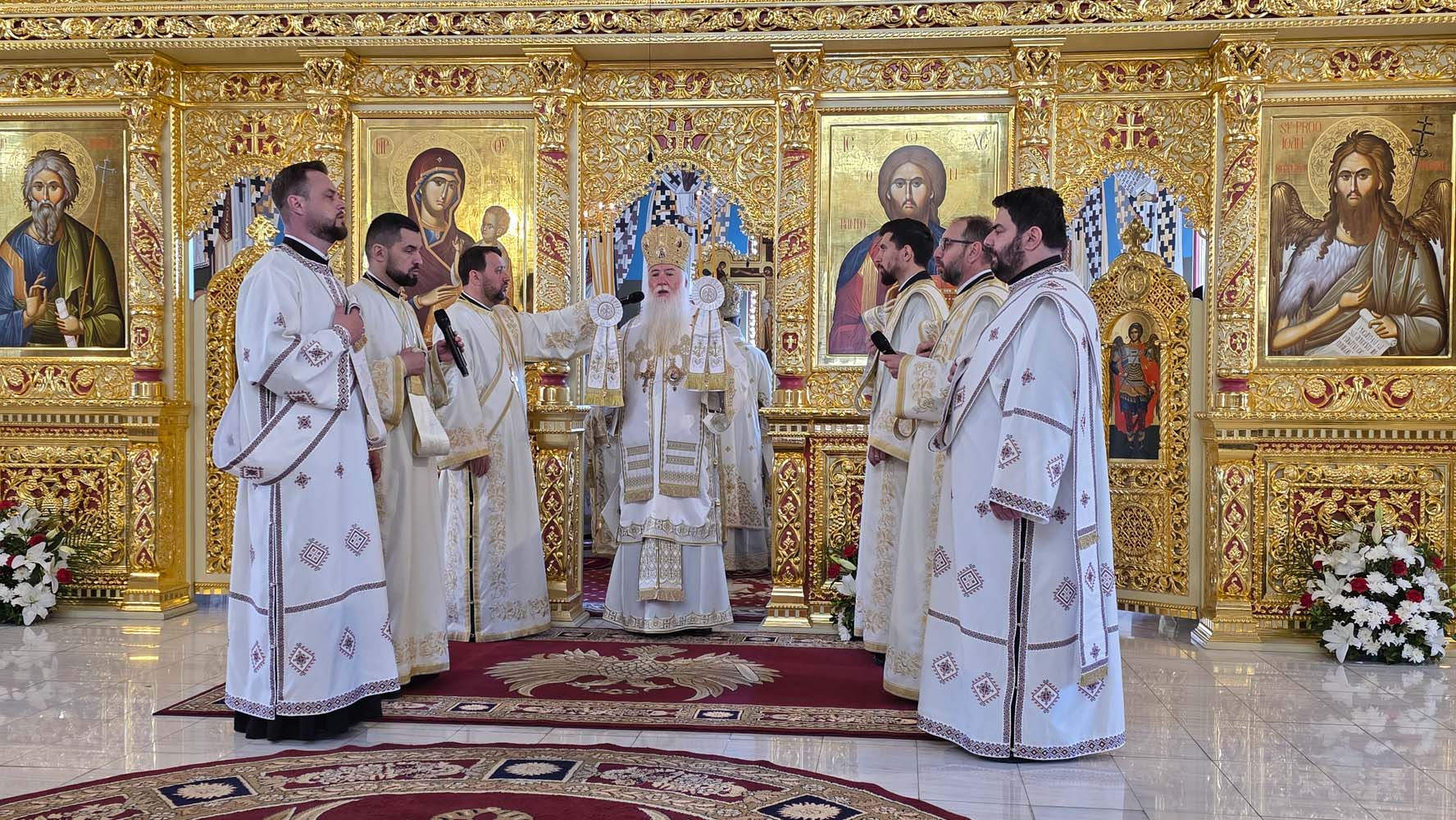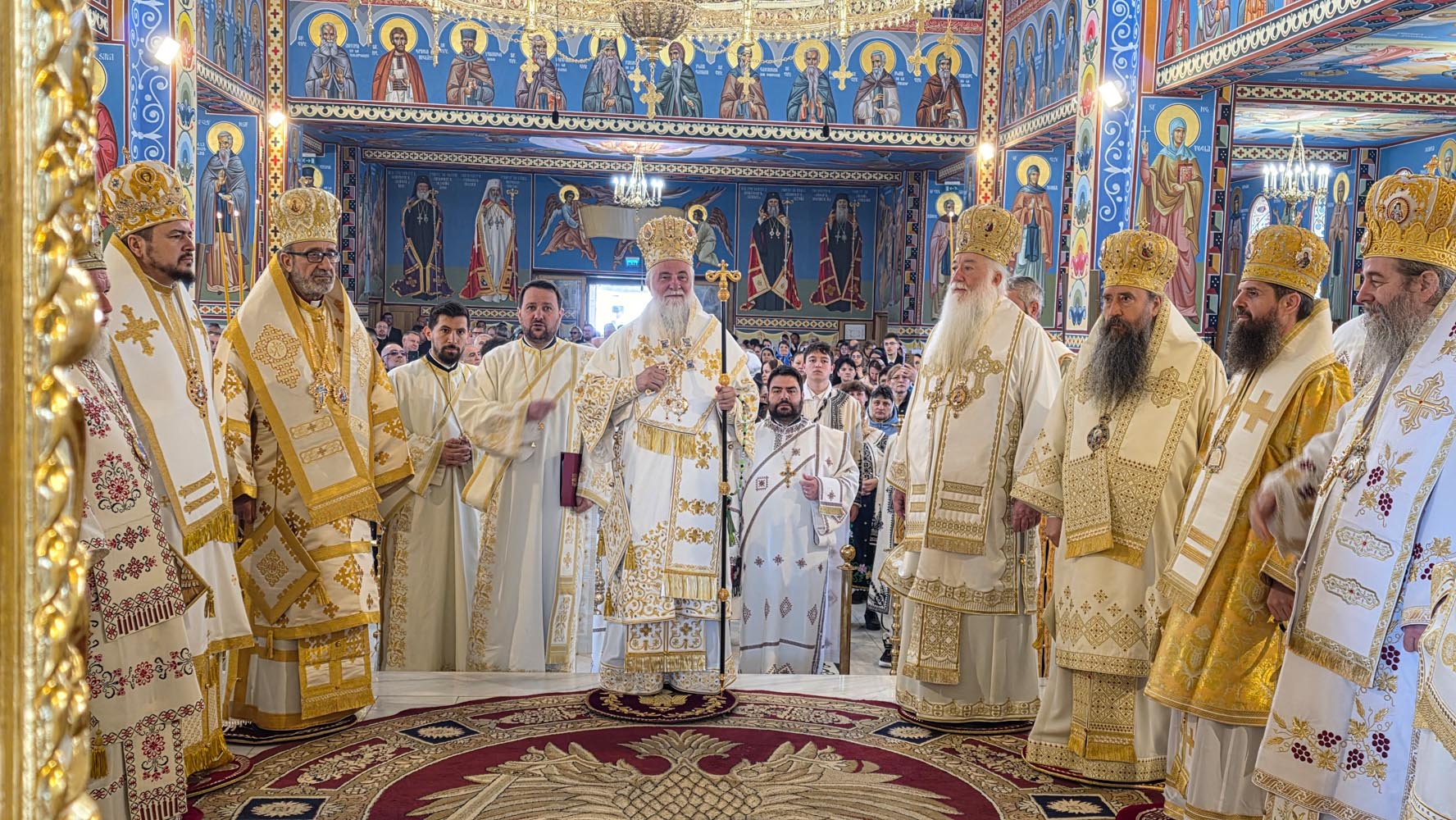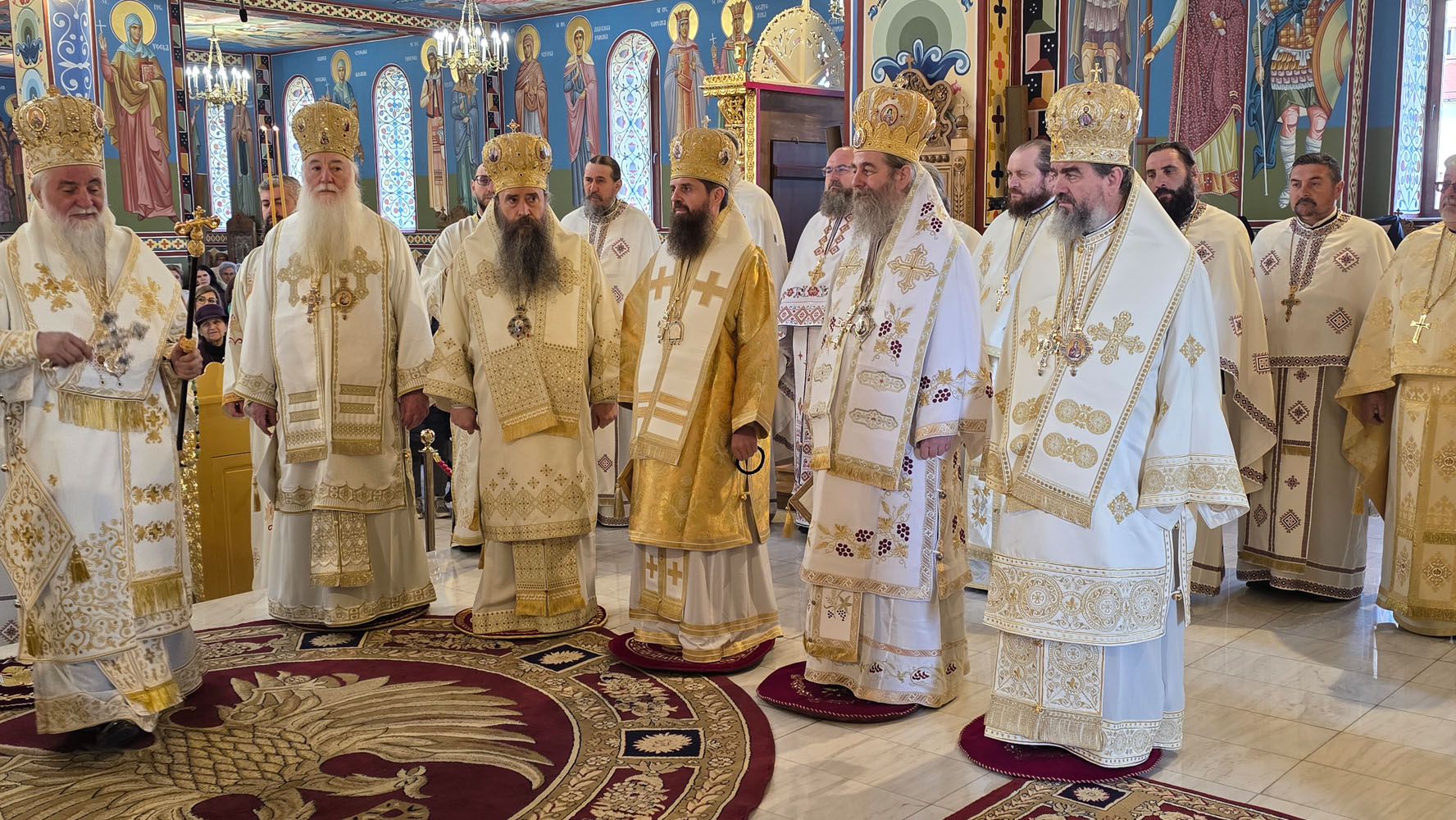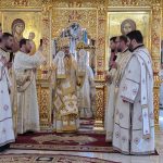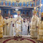Sfânta și Dumnezeiasca Liturghie, începută la ora 9.30, a fost săvârșită de un impresionant sobor de ierarhi, sub protia Înaltpreasfințitului Părinte Irineu, Arhiepiscopul Craiovei și Mitropolitul Olteniei. În jurul Sfintei Mese s-au aflat 11 arhierei, alături de numeroși preoți și diaconi, veniți din diferite colțuri ale țării și de peste hotare, sporind solemnitatea acestui moment de har.